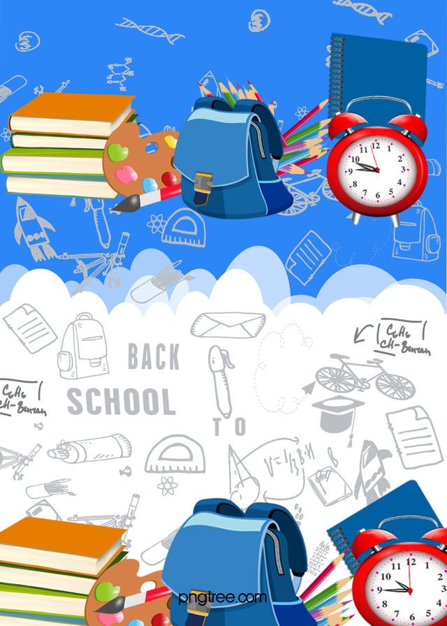 Cahiers, livres, sacs, trousses, instruments de géométrie et accessoires variés.